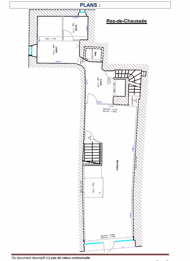 WALL PARTNERS vous propose un local commercial d'une surface totale d'environ 160m2 comprenant un rez-de-chaussée d'environ 105m2, un sous-sol entièrement rénové d'environ 45m2 et d'un bureau au premier étage d'une dizaine de mètre carré, le sous-sol est accessible par la boutique, sanitaire et point d'eau, excellent emplacement pour toute activité, nombreux commerces à proximité.